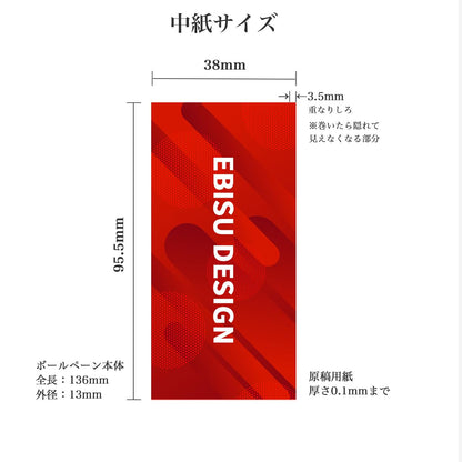 - 中に入れる原稿紙は厚さ0.1mmまで(コピー用紙程度)手書き、印刷物などお好みのデザインを入れて手作りのボールペンが作れます。体験イベント、プレゼント、ノベルティなどにオリジナルボールペンをつくりませんか。